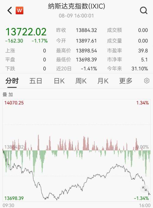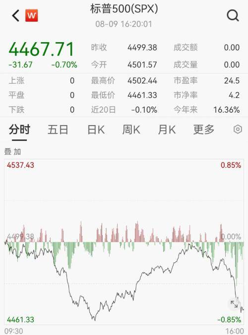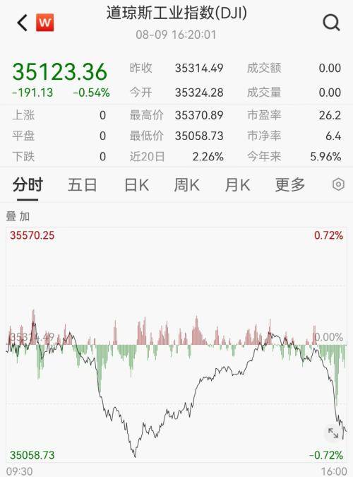美东时间8月9日,美国三大股指全线收跌。截至收盘,道指跌0.54%,报35123.36点;标普500指数跌0.7%,报4467.71点;纳指跌1.17%,报13722.02点。赛富时跌2.7%,英特尔跌2.11%,领跌道指。