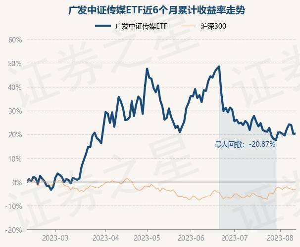 8月10日,广发中证传媒ETF最新单位净值为0.8258元,累计净值为0.8258元,较前一交易日上涨0.18%。历史数据显示该基金近1个月下跌4.2%,近3个月下跌12.6%,近6个月上涨20.26%,近1年上涨39.85%。该基金近6个月的累计收益率走势如下图: