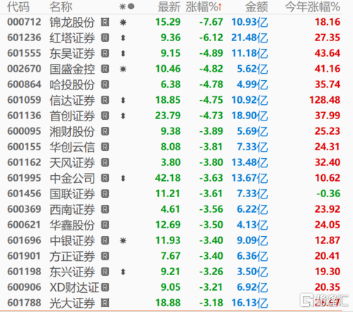 锦龙股份跌超7%,红塔证券跌超6%,首创证券,信达证券、国盛金控、哈投股份等跟跌。