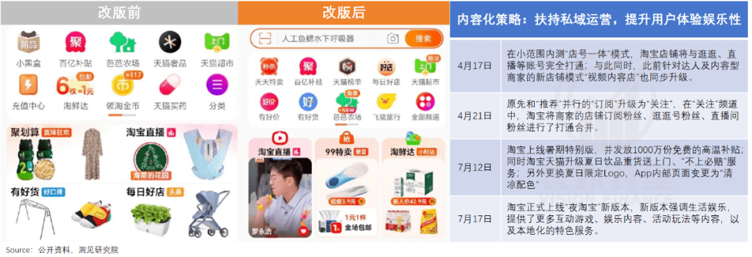 而在经营的灵活性上,确认内容化、价格力等5大战略方向的2个月时间里,淘天就对应完成了APP三年来最大幅度改版。