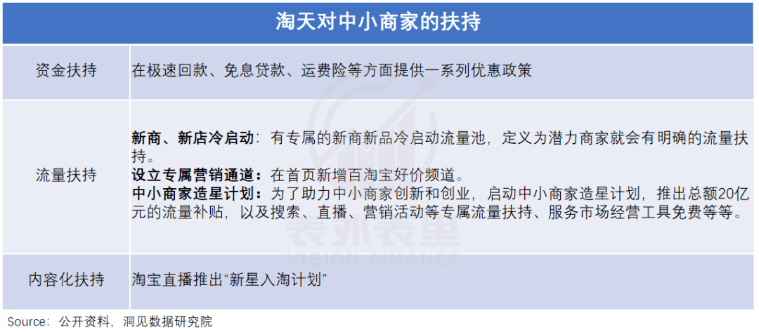 比如,在商家扶持方面,不再束手束脚,淘宝相关负责人在媒体访谈中提到:“今年在新商扶持上是历史上最大力度的,计划累计投入20亿的平台补贴。”