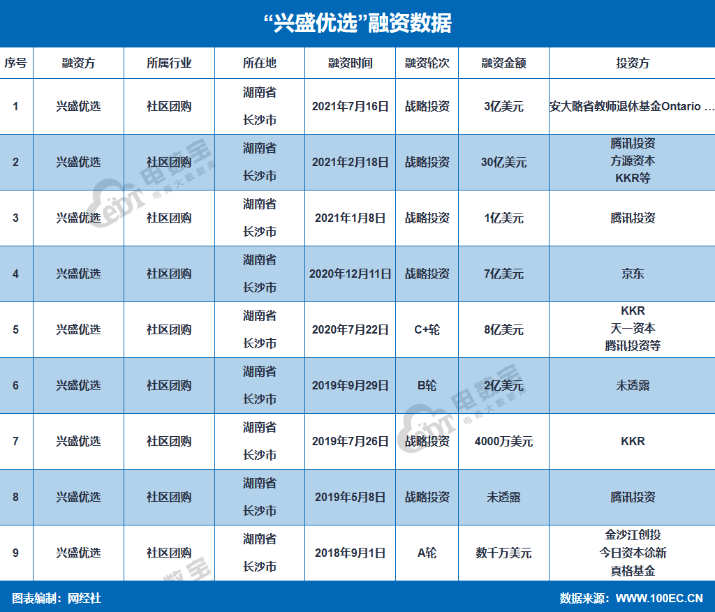 回看兴盛优选的过去,作为入局社区团购较早的老玩家之一,兴盛优选在前期吃到了社区团购的风口红利,此前获得了9轮共计约350亿元的融资,可谓是高歌猛进。不过,自2021年7月之后,兴盛优选便再未获得融资。