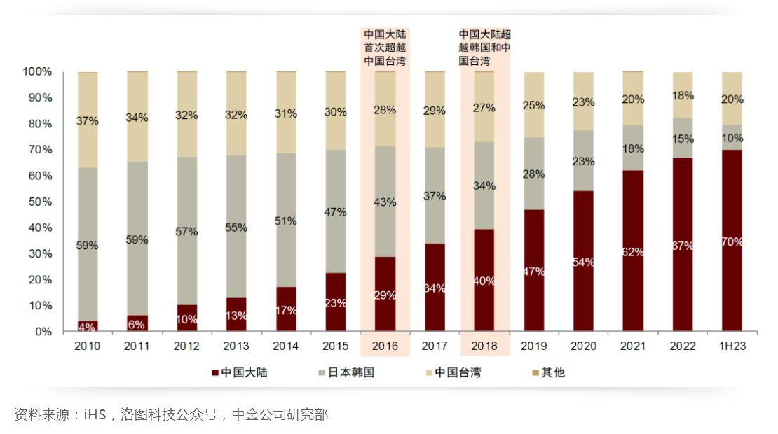 在中国大陆面板厂商积极投产、投资高世代线的布局下,中国大陆面板产能持续攀升。洛图科技数据显示,截至2023年上半年,中国大陆面板LCD产能占全球面板总产能的比重已达到70%,面板产能占比持续增加,产业链优势持续扩大。