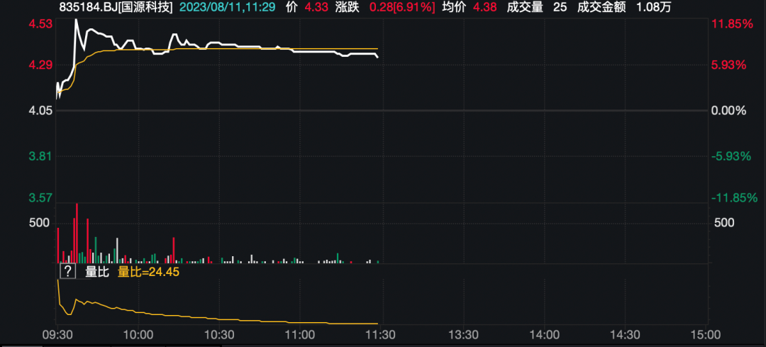 国源科技今天上午大涨6.91%。