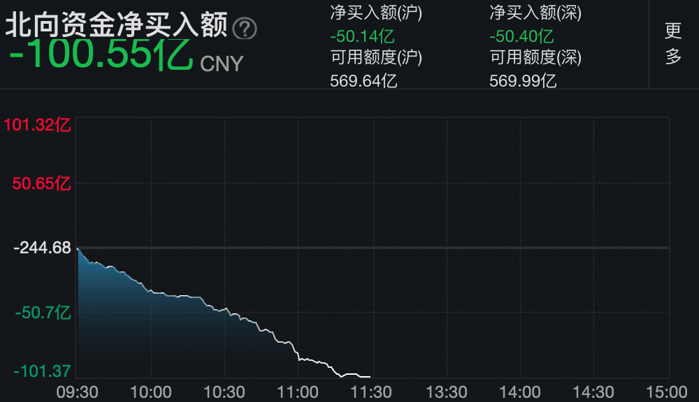 北向资金上午大幅净卖出,半天净卖出额超过100亿元。