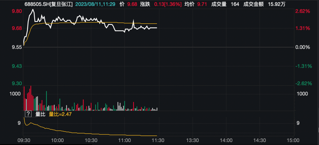 复旦张江A股今天上午上涨1.36%。