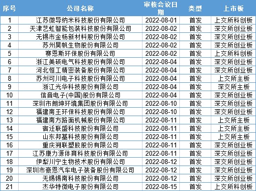 近日,随着深交所公布上市审核委员会2023年第63次和64次审议会议将于8月17日召开,沪深交易所8月份前半段的IPO会议也全部揭晓。