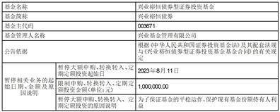 (1)为了保证基金的平稳运作,保护现有基金份额持有人利益,本基金管理人兴业基金管理有限公司决定自2023年8月11日起对兴业裕恒债券型证券投资基金(以下简称“本基金”)的申购限额设置为:本基金单个开放日每个账户申购金额单笔或累计不超过100万元(含本数),如单个开放日每个账户单笔或累计申购(包括转换转入和定期定额投资)金额超过100万元(不含本数),对申购(包括转换转入和定期定额投资)金额100万元(不含本数)以上部分本基金管理人将有权予以拒绝,但本基金管理人认为相关申请不会影响基金平稳运作的除外。此次调整针对所有销售机构,包括直销机构与代销机构。