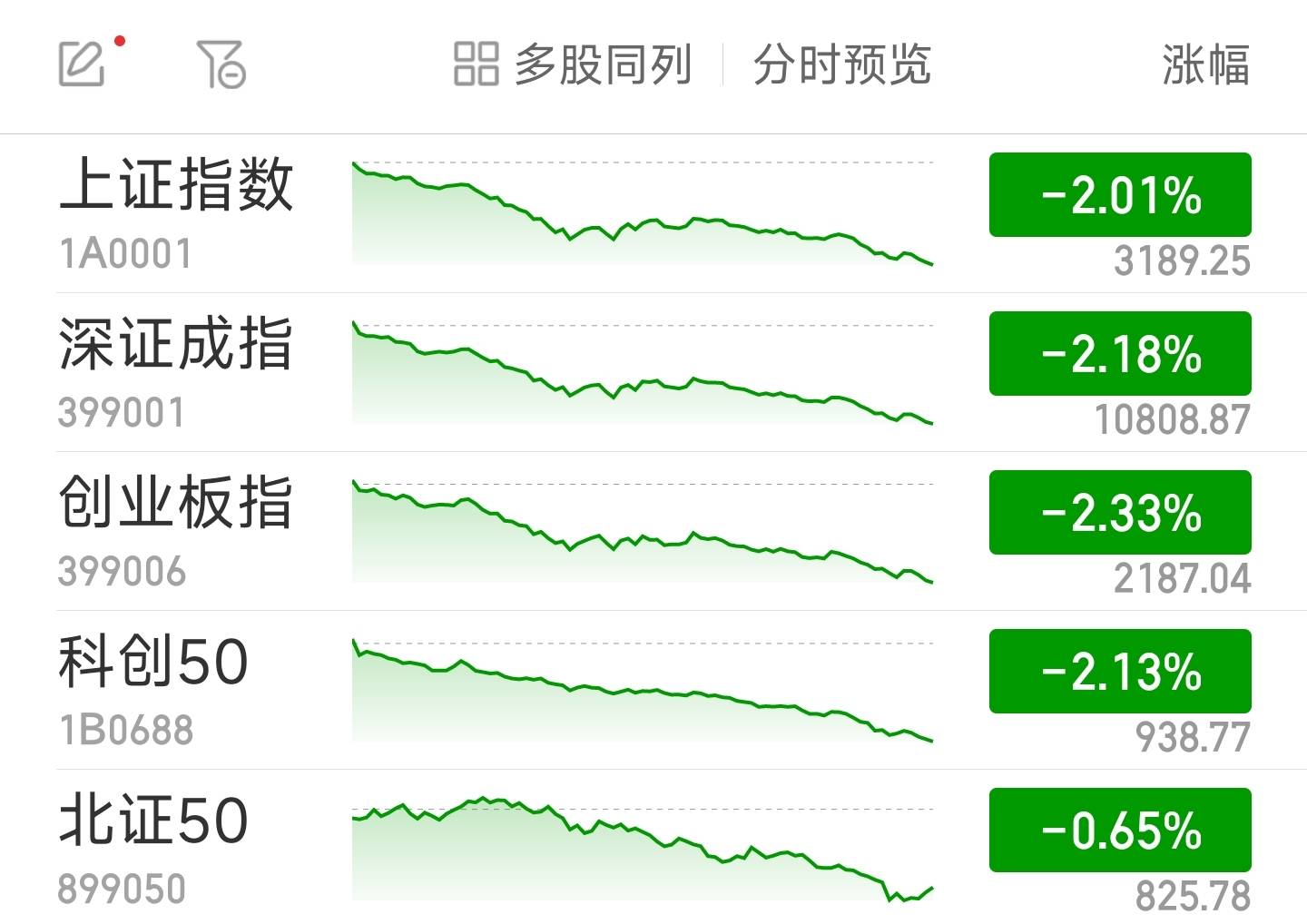 中新经纬8月11日电 周五,A股大盘持续走弱,三大指数均跌超2%,沪指跌破3200点。截至收盘,沪指跌2.01%,报3189.25点;深证成指跌2.18%,报10808.87点;创业板指跌2.33%,报2187.04点。沪深两市所有交易个股涨跌比为569:4623,两市涨停26家,跌停4家。