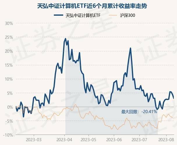 8月9日,天弘中证计算机ETF最新单位净值为0.9642元,累计净值为0.9642元,较前一交易日下跌1.29%。历史数据显示该基金近1个月下跌0.95%,近3个月下跌3.98%,近6个月上涨3.05%,近1年上涨17.2%。该基金近6个月的累计收益率走势如下图: