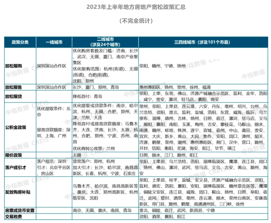 同时,也有少量城市放开“四限”,即限购、限贷、限售、限价政策。如近日扬州市住建局与多部门会商,明确自7月1日起,正式实施《关于促进市区房地产市场平稳健康发展的通知》。其中提到,在市区购买改善性住房的,不再执行限购政策,其原有住房不再执行限售政策。