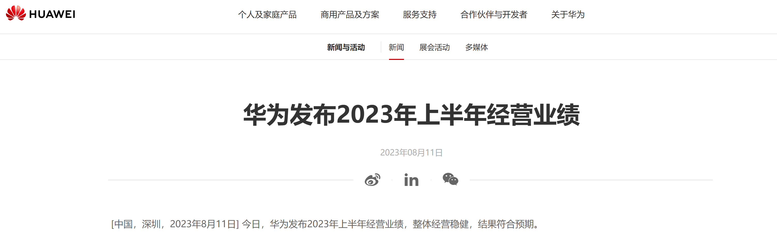 对于经营成绩,华为方面表示,整体经营稳健,结果符合预期。