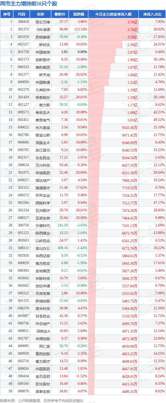 两市主力买入的前50只股(附名单及解读)