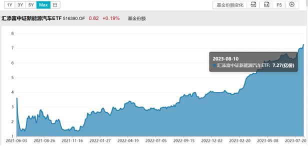 值得注意的是,截至8月10日,新能源汽车ETF(516390)基金份额创出上市以来新高!最新基金份额已上升至7.27亿份!