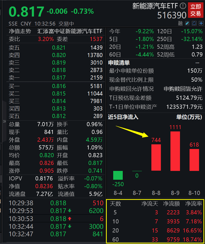 截至8月10日最新数据,新能源汽车ETF(516390)融资余额超328万元!