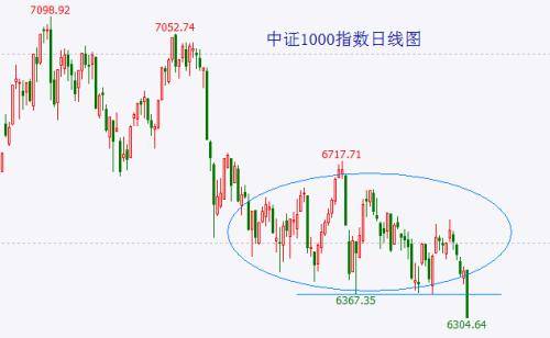 从中证1000指数来看,几日中长阴跌破了震荡平台的下轨,出现了破位信号。当前不是上升趋势,也不是低位,因此这里不存在所谓“洗盘诱空”,就是真正的向下突破,表示此前的震荡平台是下跌中继,新一轮下跌从此开启。理论上讲,下跌后长期盘整再破位,后面应该是出现一波急跌,可静待验证。