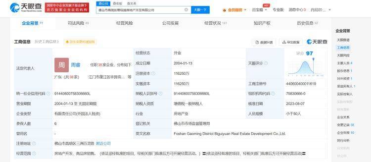 天眼查显示,近日,佛山市高明区碧桂园房地产开发有限公司发生工商变更,杨惠妍卸任董事长,卜德华卸任法定代表人、总经理、董事,新增周睿为法定代表人、执行董事。该公司成立于2004年1月,注册资本约11.63亿元,经营范围含房地产开发、商品房销售,由恒宙国际有限公司全资控股。