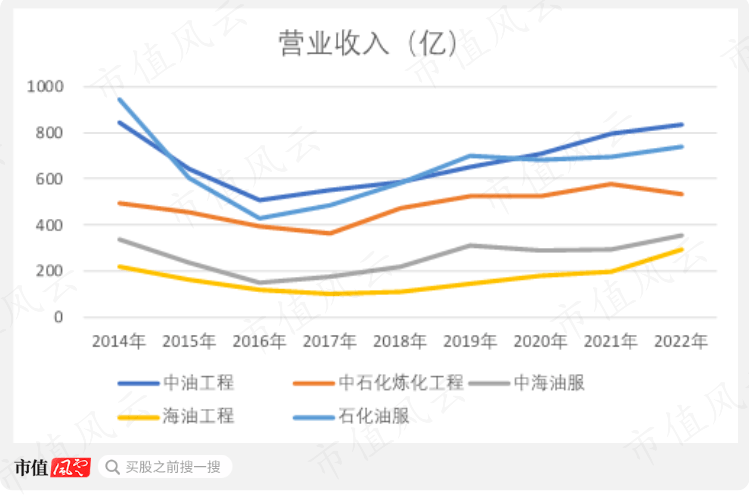 这些油服公司的营业收入也都在2016年-2017年经历过一段低谷期。