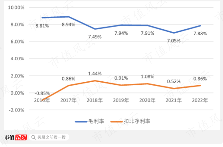 体现在财务数据上就是毛利率和净利率提高:2023年1季度的毛利率为9.58%,比去年同期6.87%提高了不少。