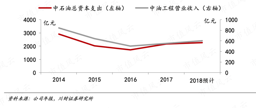 背后是2016年-2017年油价低迷之下三桶油资本支出的下降。