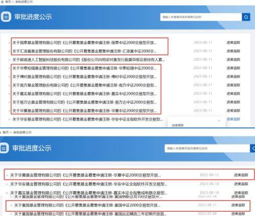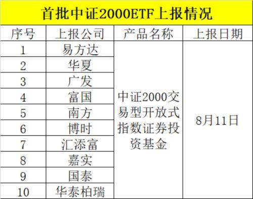 就在8月11日中证2000指数发布之际,易方达、华夏、广发、富国、南方、博时、汇添富、嘉实、华泰柏瑞、国泰等十大巨头基金公司第一时间出动,齐齐上报跟踪中证2000指数的ETF产品。