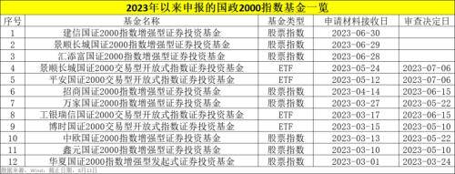 Wind数据显示,截至8月11日,2023年以来,有12基金公司向证监会提交了旗下国证2000指数基金的申报材料,截至目前已有9只产品获批。而在2022年全年,全市场共有5只相关基金报会。对比来看,今年公募布局国证2000指数基金的步伐明显加快。
