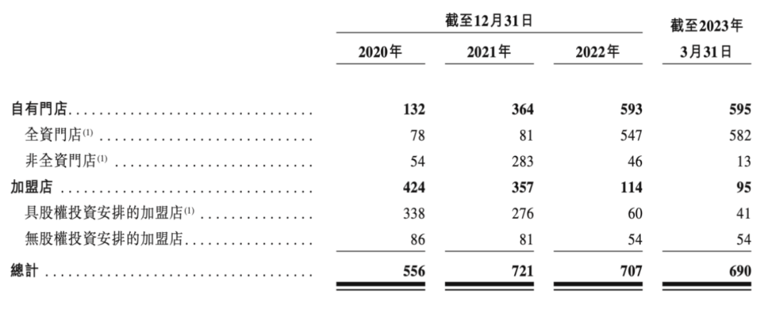也就是说,2020年,公司加盟店数量还占总门店数量近七成,到2022年就跌至不足三成。