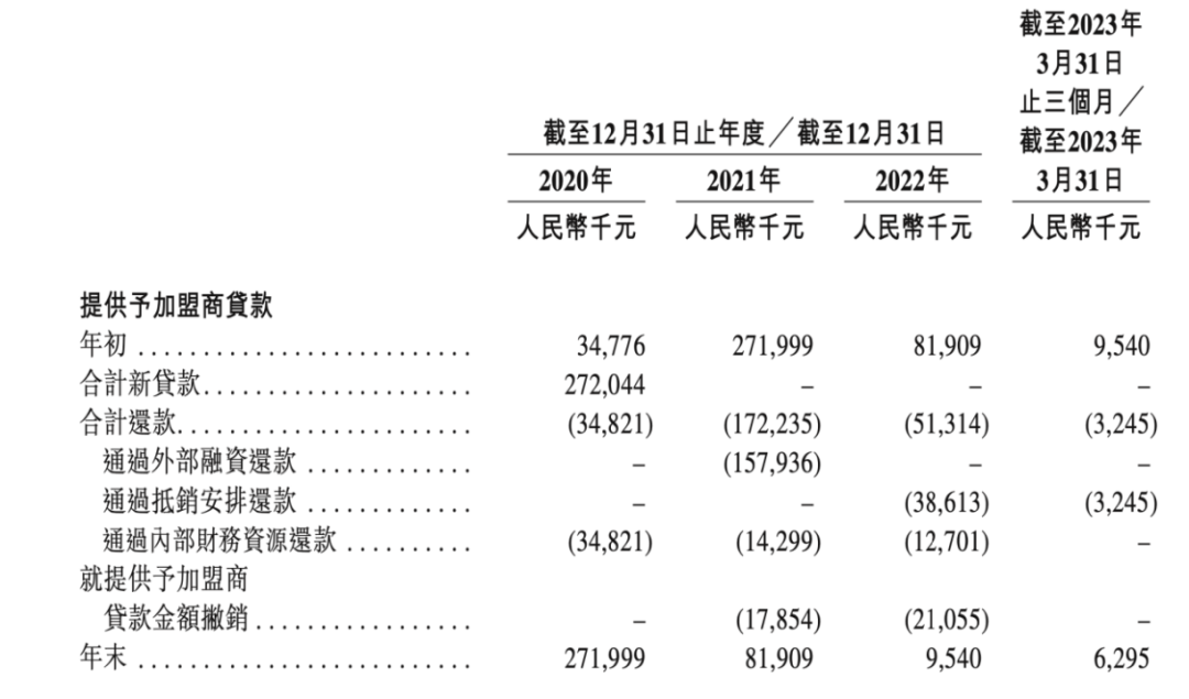 招股书显示,2020年,KK集团提供给加盟商的贷款为2.72亿元,一直到2021年6月30日起,公司才停止了该项贷款。