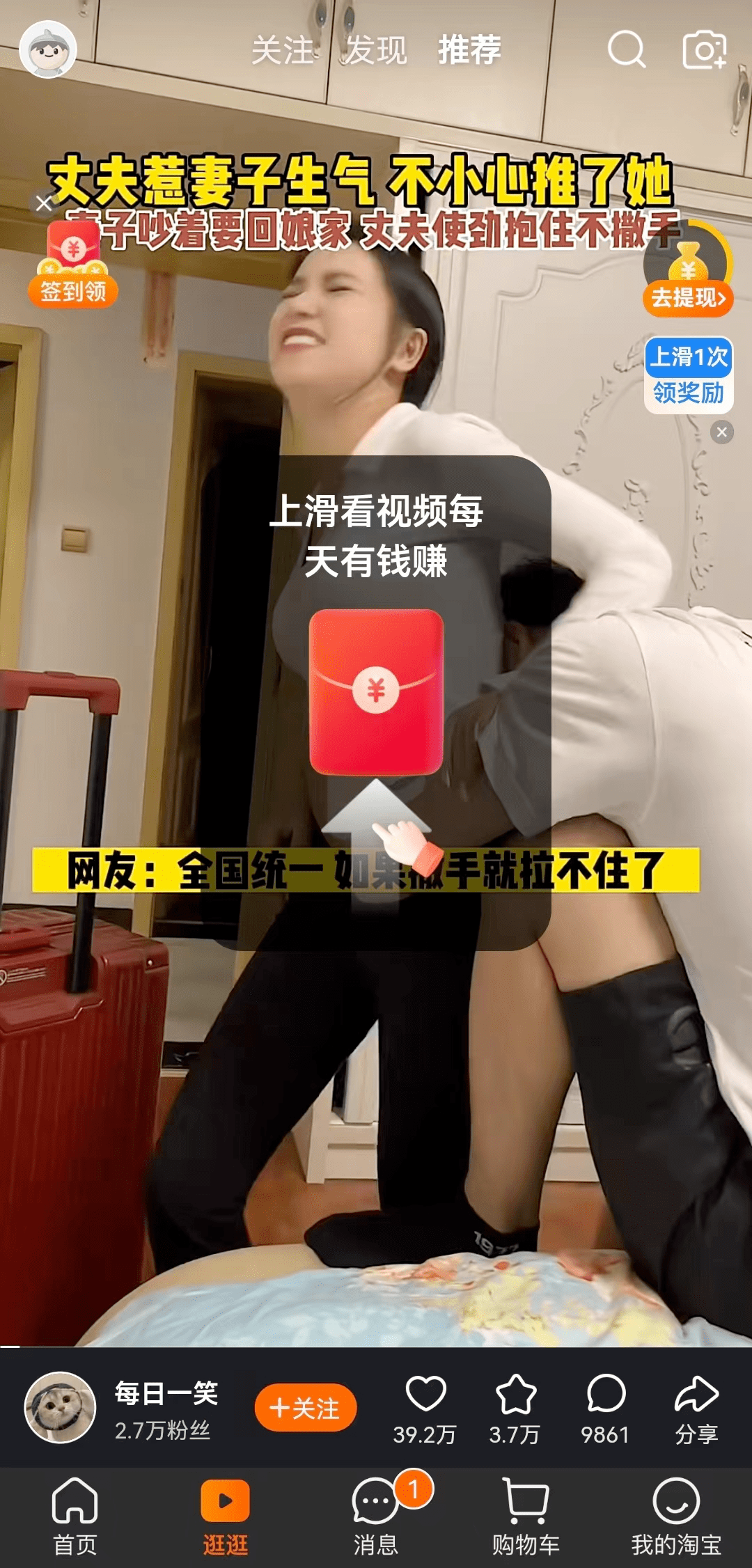 另外,淘宝拿出真金白银鼓励用户看视频,看视频能赚钱,跟前两年快手推广极速版一样: