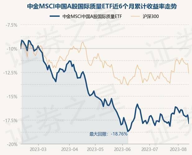 8月11日,中金MSCI中国A股国际质量ETF最新单位净值为0.5995元,累计净值为0.5995元,较前一交易日下跌2.03%。历史数据显示该基金近1个月下跌0.56%,近3个月下跌5.1%,近6个月下跌15.68%,近1年下跌14.43%。该基金近6个月的累计收益率走势如下图: