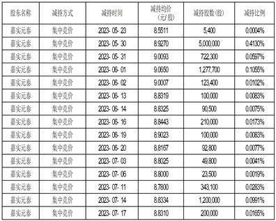 2022年6月28日至2023年8月10日,嘉实元泰通过集中竞价交易方式减持公司股份12,138,500股,占公司总股本的1.0027%。本次权益变动的具体情况如下: