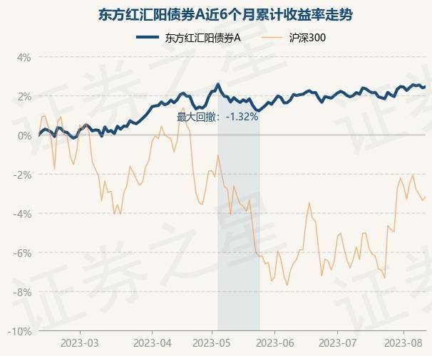 8月11日,东方红汇阳债券A最新单位净值为1.1033元,累计净值为1.3833元,较前一交易日下跌0.35%。历史数据显示该基金近1个月下跌0.08%,近3个月上涨0.1%,近6个月上涨2.07%,近1年上涨3.53%。该基金近6个月的累计收益率走势如下图: