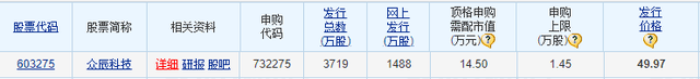 8月14日,新股打新市场将迎来众辰科技(603275)在沪市主板的发行申购。它在网上发行1488万股,顶格申购需配沪市股票市值14.50万元。