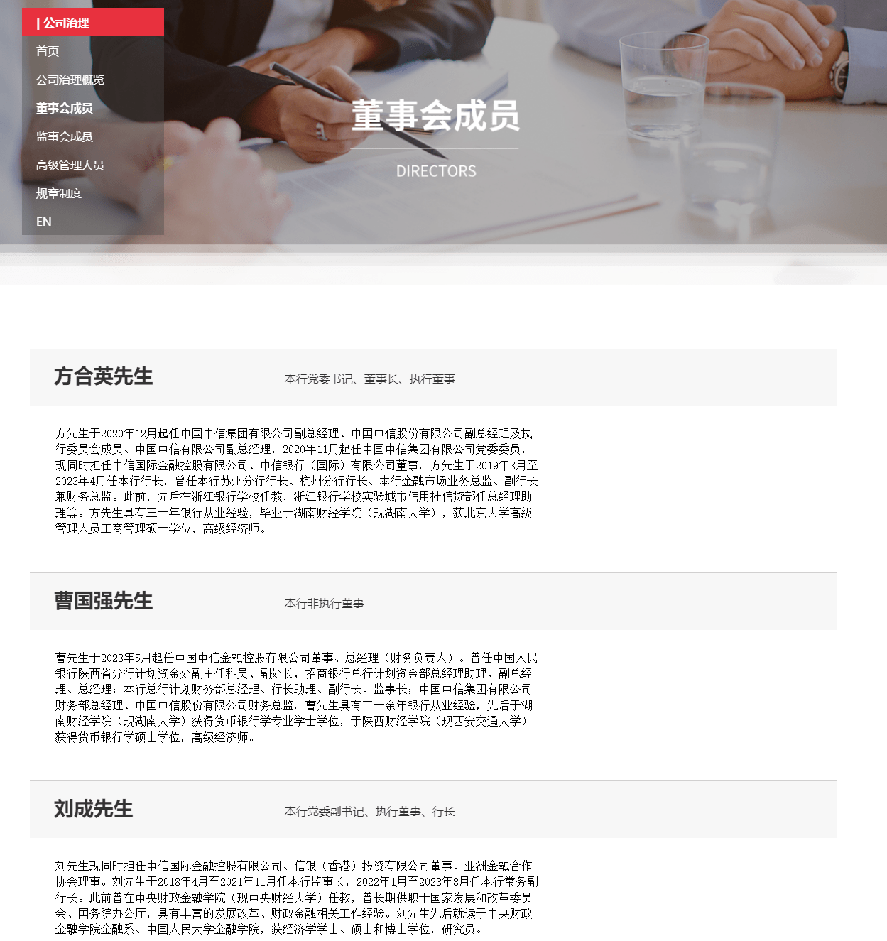 根据中信银行的公告,方合英、刘成均自8月3日起正式就任。