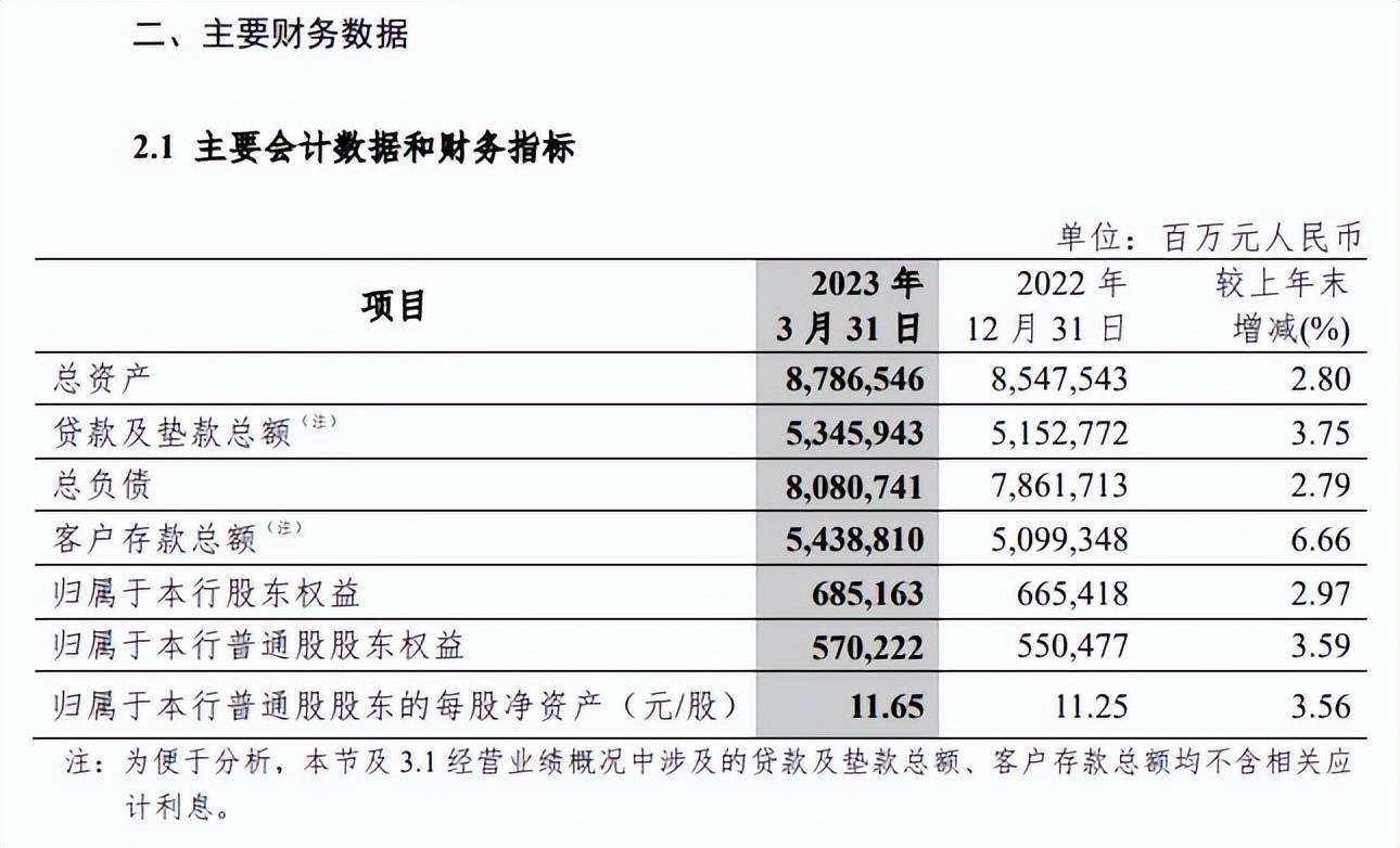 最新的中信银行2023年一季报披露,该行总资产8.79万亿元,相较于2022年末的8.55万亿元,增长2.80%。