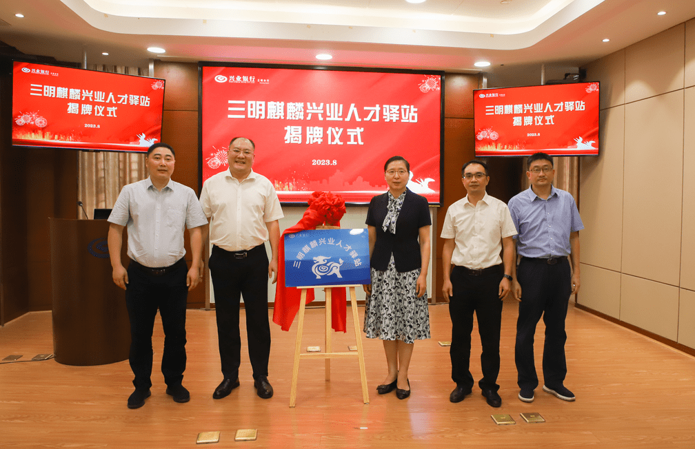 8月11日上午,福建省首家由银行领办的人才公共服务平台--三明麒麟兴业人才驿站在兴业银行三明分行正式揭牌。福建省引进人才中心主任赵永莉、兴业银行三明分行党委委员、行长助理刘辉煌共同为“三明麒麟兴业人才驿站”揭牌。三明市委组织部、市人社局、市金融监管局相关领导出席见证。