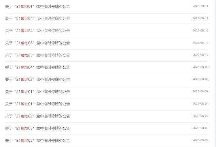 其中“21碧地01”、“21碧地02”、“21碧地03”、“21碧地04”这四只债券更是戏剧,本月以来不断有盘中因涨幅或跌幅触发临时停牌的情况,涨停与跌停交替,可谓跌宕起伏。