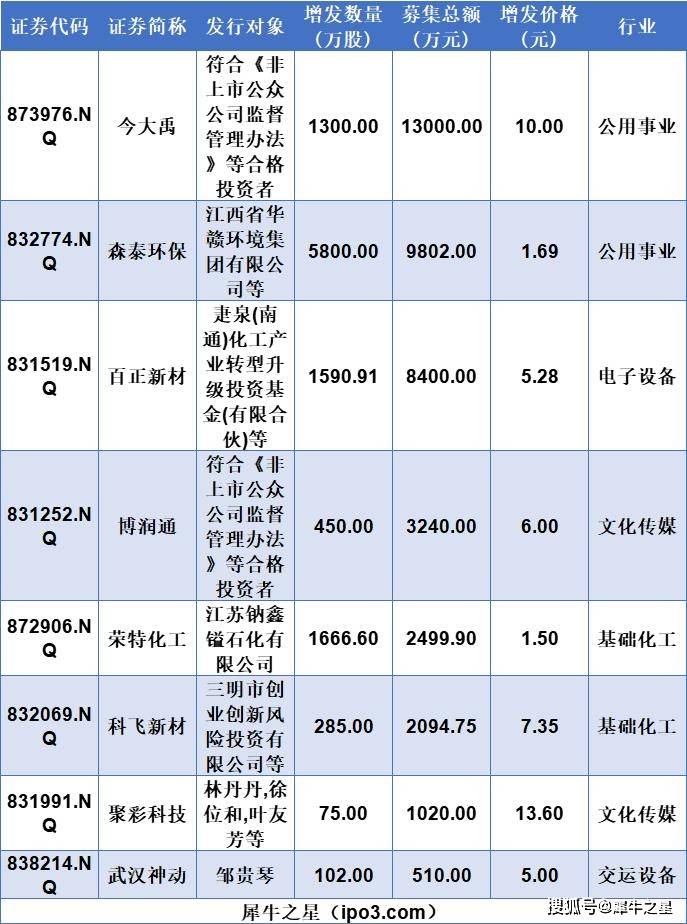 新三板本周5家公司完成股票增发上市,共募资6514万元
