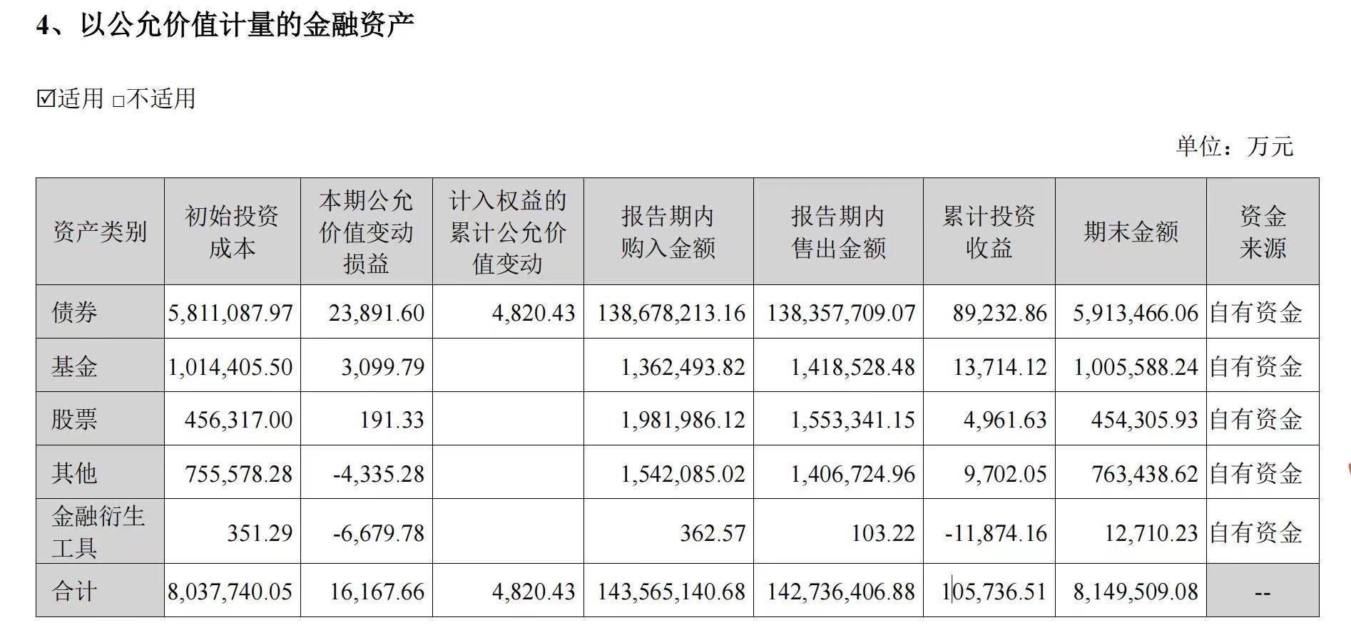 682.55亿元投资债券和基金,累计收益率约1.44%