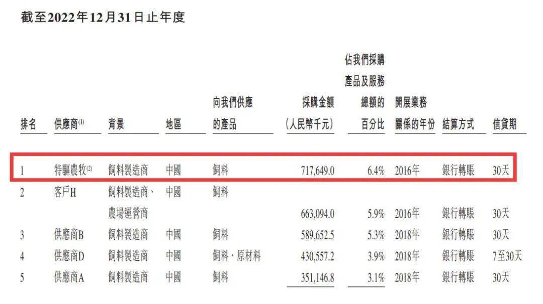 同时,2022年特驱农牧又为德康农牧第一大饲料供应商;2023年1-5月,为第四大饲料供应商。