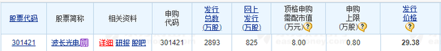 8月14日,新股打新市场将迎来波长光电(301421)在创业板的发行申购。它在网上发行825万股,顶格申购需配深市股票市值8万元。