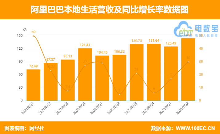 财报显示,本季度阿里本地生活集团(主要包括到家业务饿了么和到目的地业务高德)的营收为144.50亿元,与上年同期的111.31亿元相比增长30%,主要是由于饿了么GMV的强劲增长,以及高德订单的快速增长。