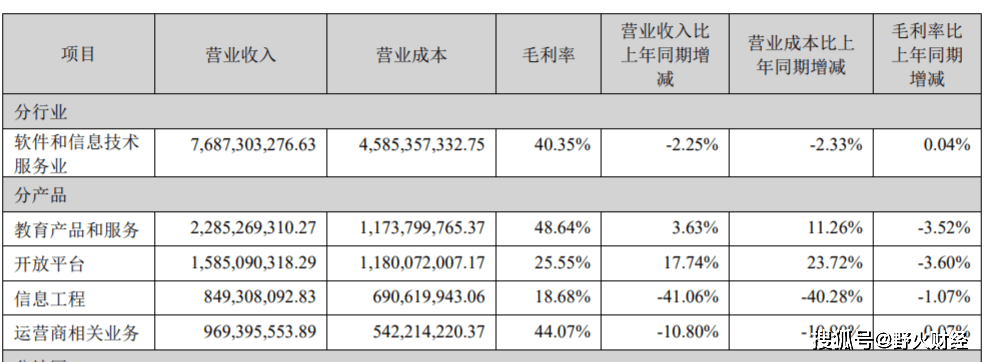 科大讯飞产品较为多样化,营收占比超过10%就有教育产品、开发平台、信息工程和运营商业务,规模最大和毛利率最高是教育产品,上半年营收增长3.6%,毛利率则略有下滑。