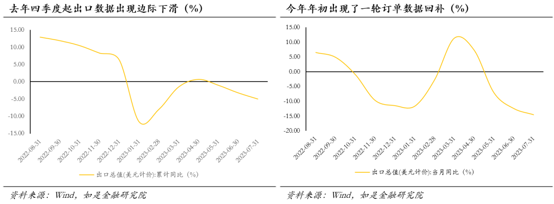 第三阶段是今年5月后,表现为三大口径均回落。5月后的出口数据也印证了我们上述推论,在持续萎靡的外需下,叠加前期积压的订单已经逐步交付完成,出口数据自然应声回落。