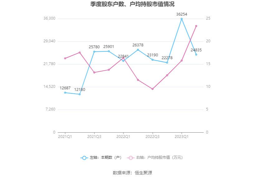 筹码集中度方面,截至2023年二季度末,公司股东总户数为2.48万户,较一季度末下降了1.14万户,降幅31.50%;户均持股市值由一季度末的15.79万元上升至23.39万元,增幅为48.13%。