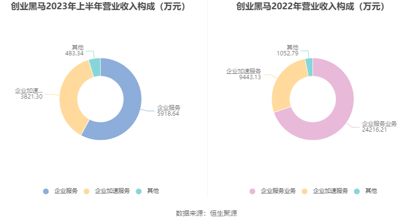 分产品来看,2023年上半年公司主营业务中,企业服务收入5918.64万元,同比下降59.23%,占营业收入的57.89%;企业加速服务收入3821.30万元,同比下降24.07%,占营业收入的37.38%。