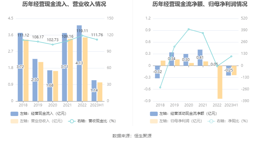 2023年上半年,公司营业收入现金比为111.76%。
