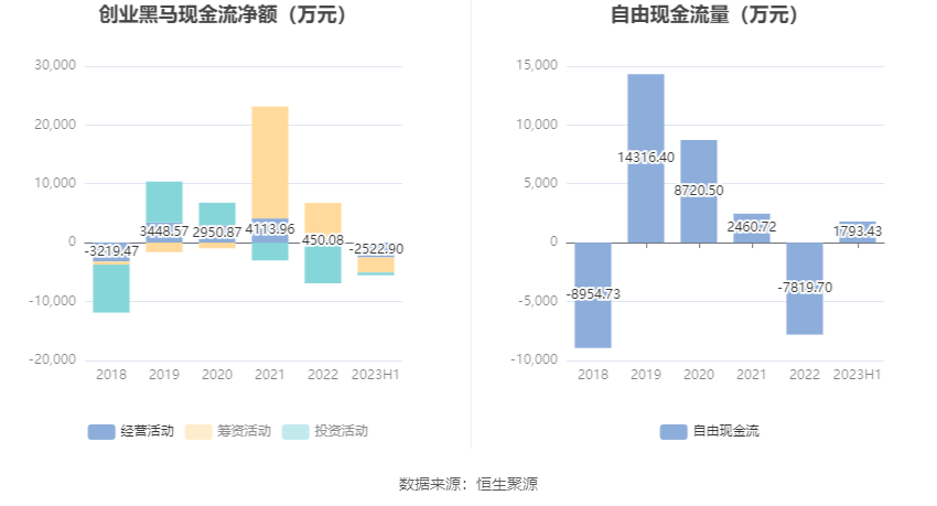 进一步统计发现,2023年上半年公司自由现金流为1793.43万元,上年同期为-3891.32万元。