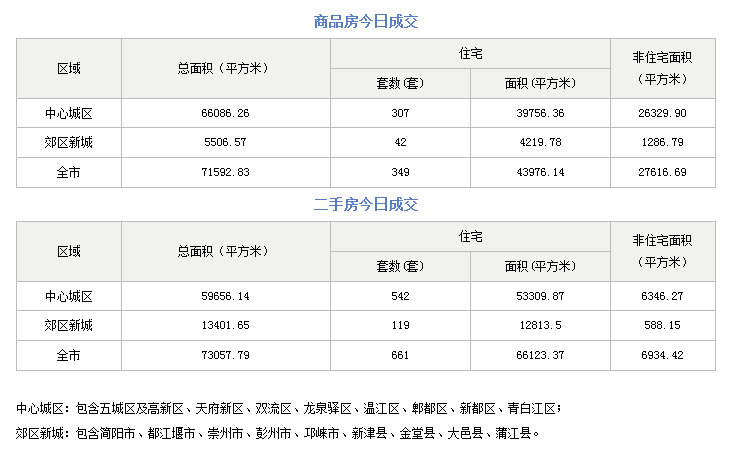 据成都市住建局住建蓉e办数据显示,2023年8月10日,成都市全市商品房成交(备案)总面积71592.83平方米;其中商品住宅成交(备案)349套,商品住宅成交(备案)面积43976.14平方米。二手房成交(备案)总面积73057.79平方米,其中二手住宅成交备案661套,二手住宅成交(备案)面积66123.37平方米。