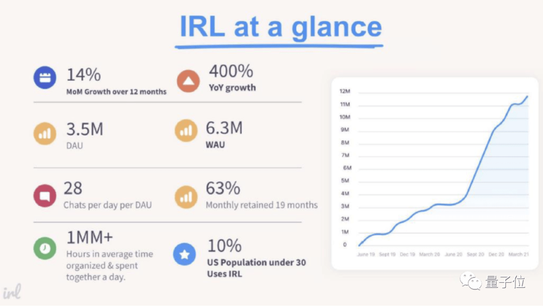 IRL(IN REAL LIFE)是一款社交APP,在2019年才成立,到了2021年,就号称拥有2000万总用户和1200万月活跃用户,在过去15个月内实现了400%的增长”。